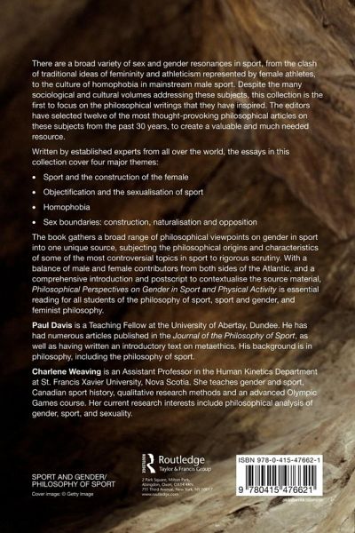 There are a broad variety of sex and gender resonances in sport, from the clash of traditional ideas of femininity and athleticism represented by female athletes, to the culture of homophobia in mainstream male sport. Despite the many sociological and cultural volumes addressing these subjects, this collection is the first to focus on the philosophical writings that they have inspired. The editors have selected twelve of the most thought-provoking philosophical articles on these subjects from the past thirty years, to create a valuable and much needed resource. Written by established experts from all over the world, the essays in this collection cover four major themes: sport and the construction of the female objectification and the sexualization of sport homophobia sex boundaries: obstruction, naturalization and opposition. The book gathers a broad range of philosophical viewpoints on gender in sport into one unique source, subjecting the philosophical origins and characteristics of some of the most controversial topics in sport to rigorous scrutiny. With a balance of male and female contributors from both sides of the Atlantic, and a comprehensive introduction and postscript to contextualize the source material, Philosophical Perspectives on Gender in Sport and Physical Activity is essential reading for all students of the philosophy of sport, sport and gender, and feminist philosophy.
