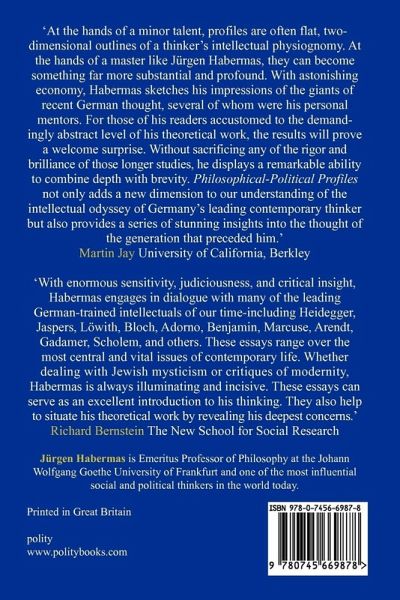 "At the hands of a minor talent, profiles are often flat, two-dimensional outlines of a thinker's intellectual physiognomy. At the hands of a master like Jürgen Habermas, they can become something far more substantial and profound. With astonishing economy, Habermas sketches his impressions of the giants of recent German thought, several of whom were his personal mentors. For those of his readers accustomed to the demandingly abstract level of his theoretical work, the results will prove a welcome surprise. Without sacrificing any of the rigor and brilliance of those longer studies, he displays a remarkable ability to combine depth with brevity. Philosophical-Political Profiles not only adds a new dimension to our understanding of the intellectual odyssey of Germany's leading contemporary thinker but also provides a series of stunning insights into the thought of the generation that preceded him." -- Martin Jay, University of California, Berkley