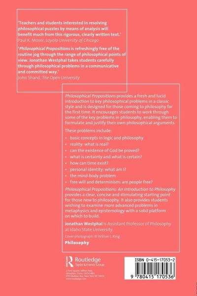Philosophical Propositions is a fresh, up to date, and reliable introduction to philosophical problems. It takes seriously the need for philosophy to deal with definitive and statable propositions, such as God, certainty, time, personal identity, the mind/body problem, free will and determinism, and the meaning of life.
