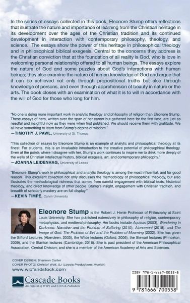 In the series of essays collected in this book, Eleonore Stump offers reflections that illustrate the nature and importance of learning from the Christian heritage in its development over the ages of the Christian tradition and its continued development in interaction with contemporary philosophy, theology, and science. The essays show the power of this heritage in philosophical theology and in philosophical biblical exegesis. Central to the concerns they address is the Christian conviction that at the foundation of all reality is a God, who is love in a welcoming personal relationship offered to all human beings. The essays explore the nature of God and some puzzles about God's interactions with human beings; they also examine the nature of human knowledge of God and argue that it can be achieved not only through propositional truths but also through knowledge of persons, and even through apprehension of beauty in nature or the arts. The book closes with an examination of what it is to will in accordance with the will of God for those who long for him.