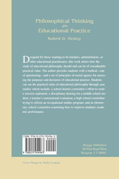 Designed for those wanting to be teachers, administrators, or other educational practitioners, this work shows how the study of educational philosophy should and can be of considerable practical value. The author provides students with a method-one of questioning-and a set of principles of moral agency for assessing the purposes and decisions of educational practice. Students can see the practical value of educational philosophy through case studies which include: a school district committee's efforts to write a mission statement; a disciplinary hearing for a middle school student; a teacher's instructional evaluation; a high school committee trying to reform an occupational studies program; and an elementary school committee examining how to improve students' academic performance. Each case study contains background information and a description of the facts of the case, an identification of the central topic, a specification of the features of moral activity that appear in the case, a questioning of the case from the standpoint of the generic norms of moral agency, and recommendations on what needs to be done in the case.