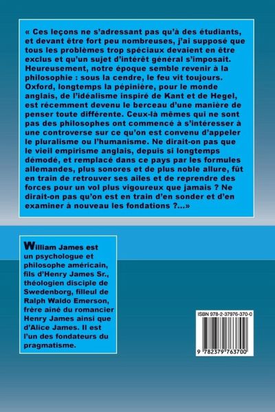 Ces leçons ne s'adressant pas qu'à des étudiants, et devant être fort peu nombreuses, j'ai supposé que tous les problèmes trop spéciaux devaient en être exclus et qu'un sujet d'intérêt général s'imposait. Heureusement, notre époque semble revenir à la philosophie : sous la cendre, le feu vit toujours. Oxford, longtemps la pépinière, pour le monde anglais, de l'idéalisme inspiré de Kant et de Hegel, est récemment devenu le berceau d'une manière de penser toute différente. Ceux-là mêmes qui ne sont pas des philosophes ont commencé à s'intéresser à une controverse sur ce qu'on est convenu d'appeler le pluralisme ou l'humanisme. Ne dirait-on pas que le vieil empirisme anglais, depuis si longtemps démodé, et remplacé dans ce pays par les formules allemandes, plus sonores et de plus noble allure, fût en train de retrouver ses ailes et de reprendre des forces pour un vol plus vigoureux que jamais ? Ne dirait-on pas qu'on est en train d'en sonder et d'en examiner à nouveau les fondations ?...