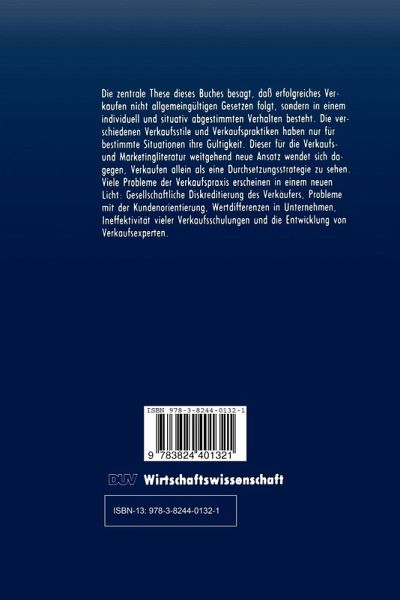 1. Einleitung: Eine Philosophie des Verkaufens.- 1.1 Probleme mit dem Verkaufen.- 1.2. Die Erforschung des Verkaufens.- 1.3. Ziel und Gang der Untersuchung.- 2. Theorien des persuasiven Verkaufens.- 2.1. Das Theorienumfeld.- 2.2. Allgemeingültigkeitsansprüche als Grundlage von Verkaufstheorien.- 2.3. Die Relativität erfolgreichen Verkäuferverhaltens.- 3. Klassifikation der Verkaufspraktiken.- 3.1. Die vier Grundkategorien.- 3.2. Die menschliche Beziehung.- 3.3. Das Verhältnis Ware-Kundenbedarf.- 3.4. Der Preis.- 3.5. Die Kaufentscheidung.- 3.6. Die Tiefenstruktur des Verkaufens.- 3.7. Die Verkaufspraktik als individuell-situatives Reagieren.- 4. Verkaufsstile und Verkaufssprache.- 4.1. Verkaufssprache und Metaphernsysteme.- 4.2. Verkäuferische Metaphernsysteme.- 4.3. Merkmale von Verkaufsstilen.- 4.4. Weitere Konsequenzen aus der Metaphernanalyse.- 5. Variablen der Verkaufssituation.- 5.1. Erste Ansätze einer Relativierung des Verkäuferverhaltens hinsichtlich unterschiedlicher Verkaufssituationen.- 5.2. Grundlinien eines Modells der Verkaufssituation.- 5.3. Konsequenzen aus dem Modell der Verkaufssituation.- 6. Verkaufen und Normen.- 6.1. Ökonomische Normen erfolgreichen Verkäuferverhaltens.- 6.2. Moralische Normen.- 6.3. Affektbezogene Normen.- 6.4. Konsequenzen.- Historischer Exkurs: Austausch und verkäuferisches Berufsbild in moralischer Perspektive.- 6.5. Überblicksskizze: Das relativiernde Rahmenmodell.- 7. Grenzen und Wert verkäuferischen Regelwissens.- 7.1. Der Dualismus von Fachwissen und Verkaufswissen.- 7.2. Verkaufs-Know-how und Regelwissen: Vom Anfänger zum Verkaufsexperten.- 8. Verkaufsschulung und Verkaufsdidaktik.- 8.1. Die gegenwärtige Situation.- 8.2. Didaktische Konsequenzen aus dem individuell-situativen Verkaufsverständnis.- 9.Begriffsanalyse.- 9.1. Die Untersuchung der Verwendungsweisen von "Verkaufen"und die Entwicklung deskriptiver Definitionen.- 9.1.1. Die austauschbezogene Bedeutung.- 9.1.2. Die persuasive Bedeutung.- 9.1.2.1. Der handlungsbezogene Gebrauch.- 9.1.2.2. Der leistungsbezogene Gebrauch.- 9.1.2.3. Der Nutzen der Unterscheidung von handlungs- und leistungsbezogenem Gebrauch.- 9.1.3. Die berufsbezogene Bedeutung.- 9.1.4. Zwischenresümee.- 9.2. Aufschlüsselung der Verwendungsweisen.- 9.2.1. Verwandte Ausdrücke und Substitute.- 9.2.2. Testmöglichkeiten, Fragestellungen und Bedeutungskontexte.- 9.2.3. Verwendungsweisen im übertragenen Sinne.- 9.2.3.1. Die Übertragung der austauschbezogenen Bedeutung.- 9.2.3.2. Die Übertragung der persuasiven Bedeutung.- 9.3. Fehlerhafte deskriptive Definitionen und ihre Konsequenzen.- 9.3.1. Die Vermengung von austauschbezogener und persuasiver Bedeutung.- 9.3.2. Zu weit gefaßte Definitionen.- 9.3.3. Der Versuch, Verkaufen als Interaktion zu definieren.- 9.4. Programmatische Definitionen.- 9.4.1. Allgemeine programmatische Definitionen.- 9.4.2. Konditionale programmatische Definitionen.- Anmerkungen.