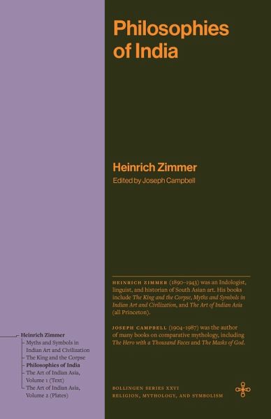 A landmark account of Indian philosophy by acclaimed scholar Heinrich Zimmer Philosophies of India is a landmark work on the foundations of Indian philosophy. Based on the copious notes of the great Indologist, linguist, and historian Heinrich Zimmer, and edited by Joseph Campbell, the book is organized into three sections. “The Highest Good” examines Eastern and Western thought, their convergence, and the foundations of Indian philosophy; “The Philosophies of Time” discusses the philosophies of success, pleasure, and duty; and “The Philosophies of Eternity” presents the fundamental concepts of Jainism, Sankhya and Yoga, Brahmanism, Buddhism, and Tantra. The subjects examined include the Buddhist Tantras, Buddhist Genesis, the Tantric presentation of divinity, the preparation of disciples and the meaning of initiation, and the symbolism of the mandala-palace Tantric ritual and twilight language.
