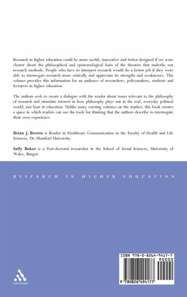 Research in higher education could be more useful, innovative and better designed if we were clearer about the philosophical and epistemological basis of the theories that underlie our research methods. People who have to interpret research would do a better job if they were able to interrogate research more critically and appreciate its strengths and weaknesses. This volume provides this information for an audience of researchers, policymakers, students and lecturers in higher education. The authors seek to create a dialogue with the reader about issues relevant to the philosophy of research and stimulate interest in how philosophy plays out in the real, everyday, political world, not least in education. Unlike many existing volumes on the market, this book creates a space in which readers can use the tools for thinking that the authors describe to interrogate their own experience.