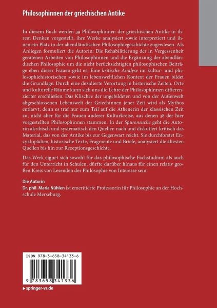 In diesem Buch werden 39 Philosophinnen der griechischen Antike in ihrem Denken vorgestellt, ihre Werke analysiert sowie interpretiert und ihnen ein Platz in der abendländischen Philosophiegeschichte zugewiesen. Als Anliegen formuliert die Autorin: Die Rehabilitierung der in Vergessenheit geratenen Arbeiten von Philosophinnen und die Ergänzung der abendländischen Philosophie um die nicht berücksichtigten philosophischen Beiträge eben dieser Frauen geht es. Eine kritische Analyse im kultur- und philosophiehistorischen sowie im lebensweltlichen Kontext der Frauen bildet die Grundlage. Durch eine dezidierte Verortung in historische Zeiten, Orte und kulturelle Räume kann sich uns die Lehre der Philosophinnen differenzierter erschließen. Das Klischee der ungebildeten und von der Außenwelt abgeschlossenen Lebenswelt der Griechinnen jener Zeit wird als Mythos entlarvt, denn es traf nur zum Teil auf die Athenerin der klassischen Zeit zu, nicht aber für die Frauen anderer Kulturkreise, aus denen 38 der hier vorgestellten Philosophinnen stammen. In der Spurensuche geht die Autorin akribisch und systematisch den Quellen nach und diskutiert kritisch das Material, das von der Antike bis zur Gegenwart reicht. Sie durchforstet Enzyklopädien, historische Texte, Fragmente und Briefe, analysiert die ältesten Quellen bis hin zur Rezeptionsgeschichte.