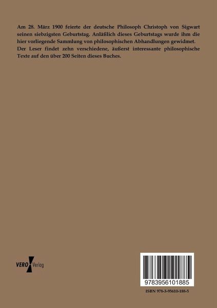 Am 28. März 1900 feierte der deutsche Philosoph Christoph von Sigwart seinen siebzigsten Geburtstag. Anläßlich dieses Geburtstags wurde ihm die hier vorliegende Sammlung von philosophischen Abhandlungen gewidmet.