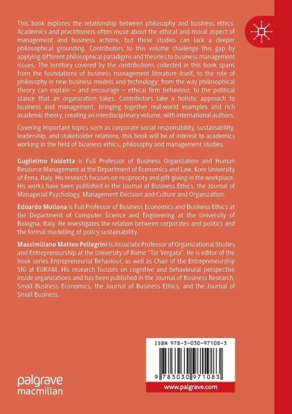 This book explores the relationship between philosophy and business ethics. Academics and practitioners often muse about the ethical and moral aspect of management and business actions, but these studies can lack a deeper philosophical grounding. Contributors to this volume challenge this gap by applying different philosophical paradigms and theories to business management issues. The territory covered by the contributions collected in this book spans from the foundations of business management literature itself, to the role of philosophy in new business models and technology; from the way philosophical theory can explain - and encourage - ethical firm behaviour, to the political stance that an organization takes. Contributors take a holistic approach to business and management, bringing together real-world examples and rich academic theory, creating an interdisciplinary volume, with international authors.