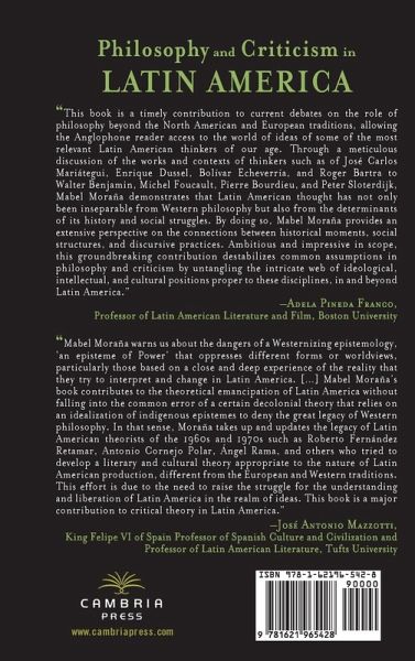 This book is in the Cambria Latin American Literatures and Cultures Series headed by Román de la Campa, the Edwin B. and Lenore R. Williams Professor of Romance Languages at the University of Pennsylvania. The objective of this book is not to recognize once again the sources of pre-Hispanic Amerindian or Afro-Hispanic thought in different regions and historical moments—a task that other critics have already accomplished admirably. Nor does this book attempt to return to the debates around the existence of a properly Latin American philosophy—a question that has also been thoroughly addressed. Rather, this book offers timely contributions to the process of conceptualizing a Latin American specificity and its forms of integration in larger contexts, both on the level of thought and the level of political and social praxis. To produce a critical reading of philosophy while also developing a philosophy of criticism is essential in cultures that continue to struggle for the decolonization of both thought and life. The first part of the book, "Biopower, Coloniality, and Emancipation in Latin America," examines authors and addressses questions from Latin American contexts in dialogue with some of the greatest thinkers of the twentieth century. These texts analyze the contributions of these authors to debates on such topics as the problems of colonialism and coloniality, the critique of modernity, and violence. Discussions of these issues give rise to other questions linked to the notions of freedom, social change, post/trans/modernity, biopolitics, and other topics that are particularly relevant for interpreting the processes of national formation and modernization and for understanding the developments that have taken place in the decades following the end of the Cold War. The second part of the book, titled "Critico-Philosophical Re-Readings and Debates," brings together texts that cover the work of philosophers whose ideas have strong links to Latin American thought. Benjamin, Foucault, and Bourdieu are all quite different thinkers, but they have in common the objective of deconstructing the discourse of power from different angles, providing forms of social consciousness that are in dialogue with Latin American critical and emancipatory projects on multiple levels. In addition to the above-mentioned philosophical directions, Peter Sloterdijk’s undeniably polemical thought opens up a new path for the critique of humanism. These approaches are studied in the present book in texts that constitute moments of critical reflection which, while recognizing these authors’ contributions to the development of critico-philosophical thought in peripheral areas, analyze aspects of their thought that can be interrogated and even challenged from a Latin American perspective. In this sense, this book suggests that, from the vantage point of Latin American cultural and political history, European philosophy, in spite of its claims of universality, clearly lacks satisfactory approaches to issues related to post/neo/colonial realities. With its interdisciplinary focus, this book will be an important resource for scholars and students in Latin American studies, comparative literature, world literature, and philosophy.