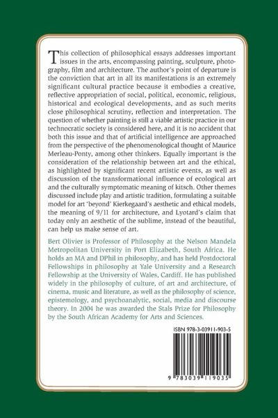 This collection of philosophical essays addresses important issues in the arts, encompassing painting, sculpture, photography, film and architecture. The author's point of departure is the conviction that art in all its manifestations is an extremely significant cultural practice because it embodies a creative, reflective appropriation of social, political, economic, religious, historical and ecological developments, and as such merits close philosophical scrutiny, reflection and interpretation. The question of whether painting is still a viable artistic practice in our technocratic society is considered here, and it is no accident that both this issue and that of artificial intelligence are approached from the perspective of the phenomenological thought of Maurice Merleau-Ponty, among other thinkers. Equally important is the consideration of the relationship between art and the ethical, as highlighted by significant recent artistic events, as well as discussion of the transformational influence of ecological art and the culturally symptomatic meaning of kitsch. Other themes discussed include play and artistic tradition, formulating a suitable model for art 'beyond' Kierkegaard's aesthetic and ethical models, the meaning of 9/11 for architecture, and Lyotard's claim that today only an aesthetic of the sublime, instead of the beautiful, can help us make sense of art.
