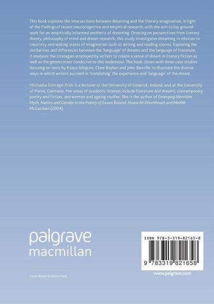 This book explores the intersections between dreaming and the literary imagination, in light of the findings of recent neurocognitive and empirical research, with the aim to lay a groundwork for an empirically informed aesthetics of dreaming. Drawing on perspectives from literary theory, philosophy of mind and dream research, this study investigates dreaming in relation to creativity and waking states of imagination such as writing and reading stories. Exploring the similarities and differences between the 'language' of dreams and the language of literature, it analyses the strategies employed by writers to create a sense of dream in literary fiction as well as the genres most conducive to this endeavour. The book closes with three case studies focusing on texts by Kazuo Ishiguro, Clare Boylan and John Banville to illustrate the diverse ways in which writers achieve to 'translate' the experience and 'language' of the dream.
