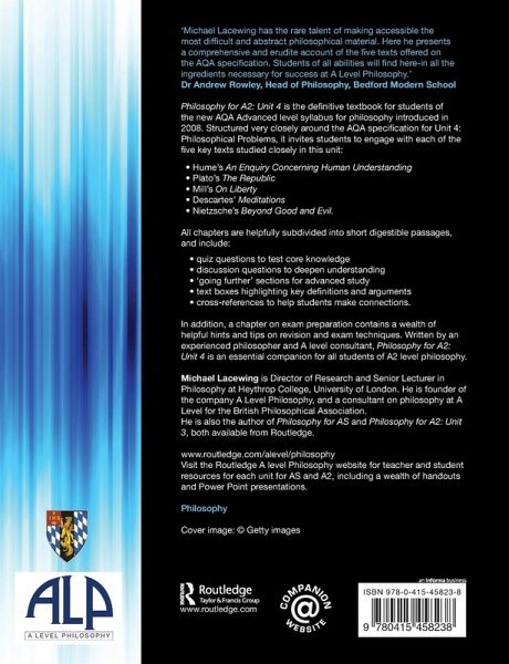 This is the ideal companion to Unit 4 of the new AQA philosophy syllabus, covering the set texts in Unit 4: Philosophical Problems.The author looks at each text in depth, helping students to make the right connections, and assisting the student with quiz and discussion questions, past exam questions, advanced study sections, cross-references and summaries.