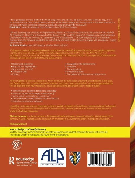 This definitive companion for any student of AS level philosophy covers each theme in Units 1 and 2 in a clear style, with student-friendly features including quiz and discussion questions, chapter summaries, cross-references and tips on exam preparation.