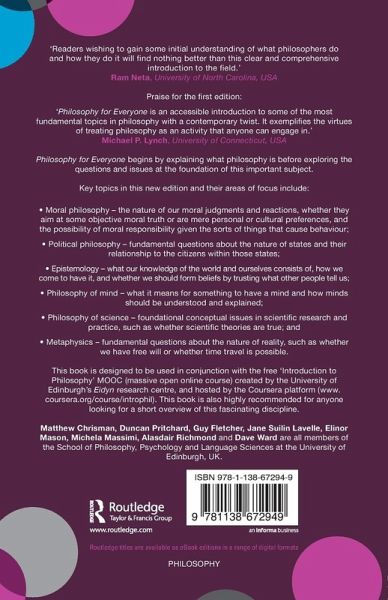 'Philosophy for Everyone is an accessible introduction to some of the most fundamental topics in philosophy with a contemporary twist. It exemplifies the virtues of treating philosophy as an activity that anyone can engage in.' - Michael P. Lynch, University of Connecticut, USA