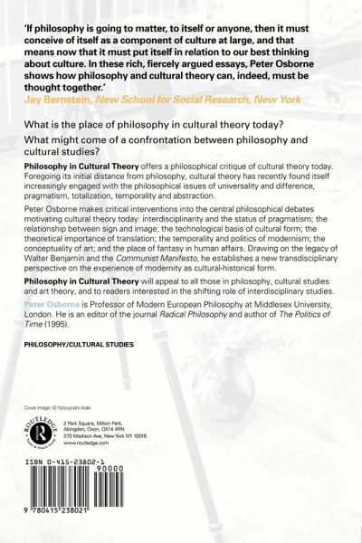 Philosophy in Cultural Theory boldly crosses disciplinary boundaries to offer a philosophical critique of cultural theory today. Drawing on the legacy of Walter Benjamin, Peter Osborne looks critically at central philosophical debates in cultural theory, such as: