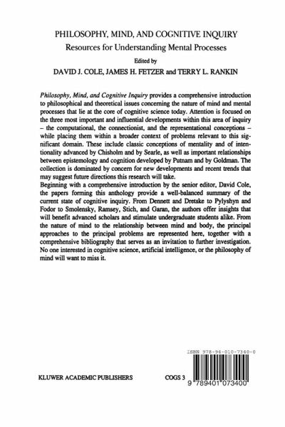 `... it offers -- to quote David Cole -- `valuable resources for future research into the theory of mind and in artificial intelligence'. Those of you with an interest in the philosophical underpinnings of cognitive science will enjoy this volume.'