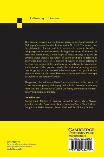 This volume contains notable essays on philosophy of action based on the Royal Institute of Philosophy lecture series. A wide range of topics relating to action are covered, including the nature of action and issues related to virtue, ethics, freedom and responsibility.