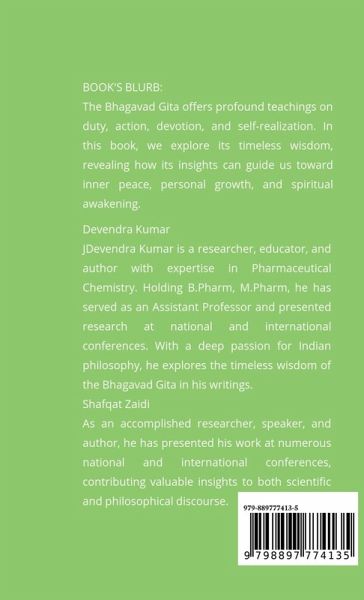 The Bhagavad Gita, often called the Song of God, is one of the most profound spiritual and philosophical texts in human history. Rooted in the great epic Mahabharata, it is a timeless dialogue between Lord Krishna and Arjuna on the battlefield of Kurukshetra. This divine conversation transcends time, culture, and religion, offering deep insights into life's most fundamental questions-duty, morality, righteousness, self-realization, and the path to liberation. "Whatever happened, happened for the good. Whatever is happening, is happening for the good. Whatever will happen, will happen for the good." - Bhagavad Gita