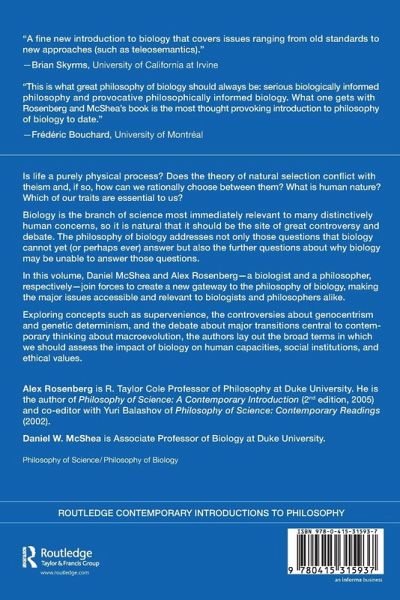 Is life a purely physical process? What is human nature? Which of our traits is essential to us? In this volume, Daniel McShea and Alex Rosenberg - a biologist and a philosopher, respectively - join forces to create a new gateway to the philosophy of biology; making the major issues accessible and relevant to biologists and philosophers alike. Exploring concepts such as supervenience; the controversies about genocentrism and genetic determinism; and the debate about major transitions central to contemporary thinking about macroevolution; the authors lay out the broad terms in which we should assess the impact of biology on human capacities, social institutions and ethical values.