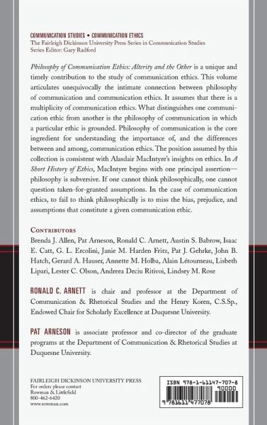 Philosophy of Communication Ethics is a unique and timely volume that creatively examines communication ethics, philosophy of communication, and "the other."