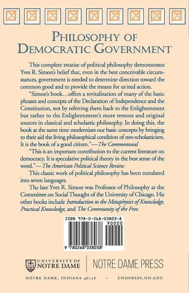 This complete treatise of political philosophy demonstrates Yves R. Simon's belief that, even in the best conceivable circumstances, government is needed to determine direction toward the common good and to provide the means for united action.