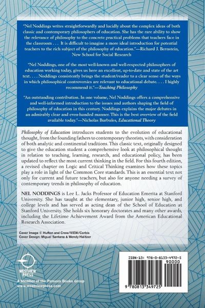The first edition of Nel Noddings' Philosophy of Education was acclaimed as the 'best overview in the field' by the journal Teaching Philosophy and predicted to 'become the standard textbook in philosophy of education' by Educational Theory. This classic text, originally designed to give the education student a comprehensive look at philosophical thought in relation to teaching, learning, research, and educational policy, has now been updated to reflect the most current thinking in the field. A revised chapter on Logic and Critical Thinking makes the topic more accessible to students and examines how critical thinking plays a role in light of the new Common Core standards.