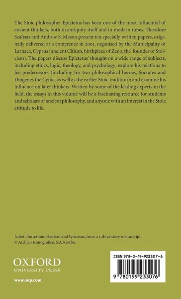 The Stoic philosopher Epictetus has been one of the most influential of ancient thinkers, both in antiquity itself and in modern times. Theodore Scaltsas and Andrew S. Mason present ten specially written papers which discuss Epictetus' thought on a wide range of subjects, including ethics, logic, theology, and psychology; explore his relations to his predecessors (including his two philosophical heroes, Socrates and Diogenes the Cynic, as well as the earlier Stoic tradition); and examine his influence on later thinkers. Written by some of the leading experts in the field, the essays in this volume will be a fascinating resource for students and scholars of ancient philosophy, and anyone with in an interest in the Stoic attitude to life.