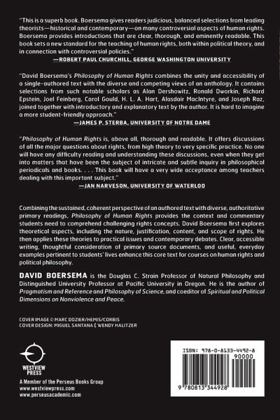 Combining the sustained, coherent perspective of an authored text with diverse, authoritative primary readings, Philosophy of Human Rights provides the context and commentary students need to comprehend challenging rights concepts. Clear, accessible writing, thoughtful consideration of primary source documents, and practical, everyday examples pertinent to students' lives enhance this core textbook for courses on human rights and political philosophy. The first part of the book explores theoretical aspects, including the nature, justification, content, and scope of rights. With an emphasis on contemporary issues and debates, the second part applies these theories to practical issues such as political discourse, free expression, the right to privacy, children's rights, and victims' rights. The third part of the book features the crucial documents that are referred to throughout the book, including the Universal Declaration of Human Rights, the Convention on the Elimination of All Forms of Discrimination Against Women, the African Charter on Human Rights and Peoples' Rights, and many more.