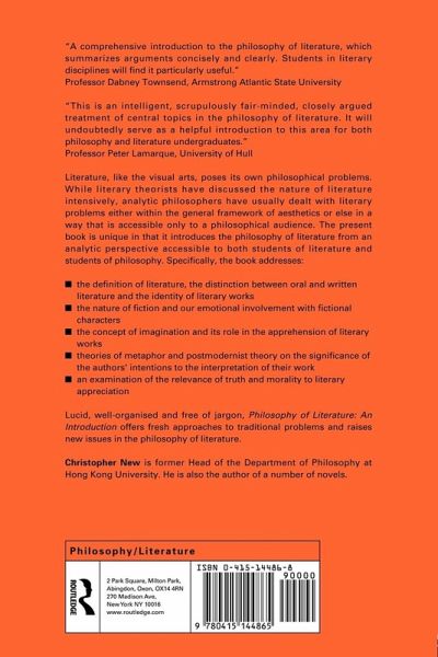 Literature, like the visual arts, poses its own philosophical problems. While literary theorists have discussed the nature of literature intensively, analytic philosophers have usually dealt with literary problems either within the general framework of aesthetics or else in a way that is accessible only to a philosophical audience. The present book is unique in that it introduces the philosophy of literature from an analytic perspective accessible to both students of literature and students of philosophy. Specifically, the book addresses: the definition of literature, the distinction between oral and written literature and the identity of literary works the nature of fiction and our emotional involvement with fictional characters the concept of imagination and its role in the apprehension of literary works theories of metaphor and postmodernist theory on the significance of the authors' intentions to the interpretationof their work an examination of the relevance of thruth and morality to literary appreciation Lucid and well organised and free from jargon, hilosophy of Literature: An Introduction offers fresh approaches to traditional problems and raises new issues in the philosophy of literature.