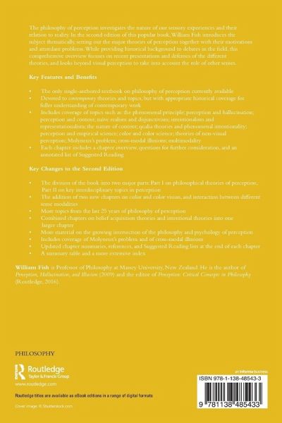 The philosophy of perception investigates the nature of our sensory experiences and their relation to reality. In the second edition of this popular book, William Fish introduces the subject thematically, setting out the major theories of perception together with their motivations and attendant problems. While providing historical background to debates in the field, this comprehensive overview focuses on recent presentations and defenses of the different theories, and looks beyond visual perception to take into account the role of other senses.