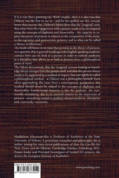 If it is true that a painting can 'think visually', then it is also true that Diderot was the first to say so - and he has spelled out this concept better than anyone else. Diderot's Salons show that the 'imaginal' sense that arises from the engagement with a picture needs to be investigated using the concepts of ékphrasis and theatricality - the capacity to explore the power of pictures in relation to the composition of the scene, to the expressive and pantomimic gestures, and to what can be called a 'theory of affections'.