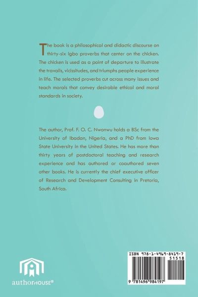 The book is a philosophical and didactic discourse on thirty-six Igbo proverbs that center on the chicken. The chicken is used as a point of departure to illustrate the travails, vicissitudes, and triumphs people experience in life. The selected proverbs cut across many issues and teach morals that convey desirable ethical and moral standards in society.
