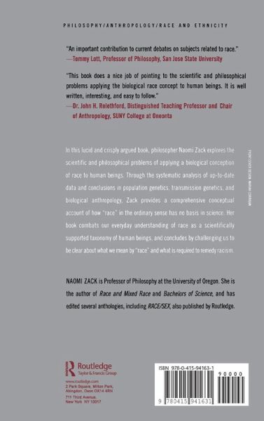 First published in 2003. In this concisely argued, short new book, well-known philosopher Naomi Zack explores the scientific and philosophical problems in applying a biological conception of race to human beings. Through the systematic analysis of up-to-date data and conclusions in population genetics, transmission genetics, and biological anthropology, Zack provides a comprehensive conceptual account of how race in the ordinary sense has no basis in science. Her book combats our everyday understanding of race as a scientifically supported taxonomy of human beings, and in conclusion challenges us to be clear about what we mean by race and what it would require to remedy racism.