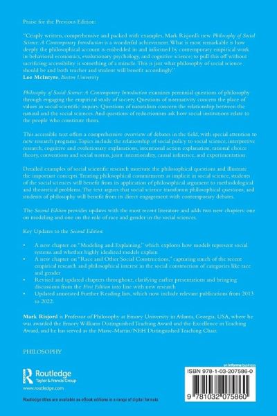 Philosophy of Social Science: A Contemporary Introduction examines perennial questions of philosophy through engaging the empirical study of society. Questions of normativity concern the place of values in social scientific inquiry. Questions of naturalism concern the relationship between the natural and the social sciences. And questions of reductionism ask how social institutions relate to the people who constitute them.