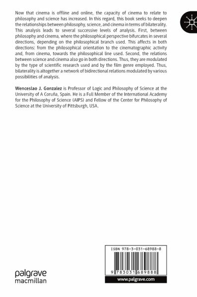 Now that cinema is offline and online, the capacity of cinema to relate to philosophy and science has increased. In this regard, this book seeks to deepen the relationship between philosophy, science, and cinema in terms of bilaterality. This analysis leads to several successive levels of analysis. First, between philosophy and cinema, where the philosophical perspective bifurcates in several directions, depending on the philosophical branch used. This affects in both directions: from the philosophical orientation to the cinematographic activity and, from cinema, towards the philosophical line used. Second, the relations between science and cinema also go in both directions. Thus, they are modulated by the type of scientific research used and by the film genre employed. Thus, bilaterality is altogether a network of bidirectional relations modulated by various possibilities of analysis.