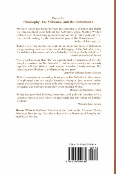 In 1787, Alexander Hamilton, John Jay, and James Madison wrote The Federalist to rally support for the ratification of the Constitution of the United States. In spite of the pragmatic intentions of the authors, they often implicitly expressed themselves in philosophical language, drawing from the major philosophers of their day, notably Locke and Hume. In this book, Morton White presents the first synoptic view of the major philosopical ideas in The Federalist. Using the tools of philosophy and intellectual history, he examines the theories and disciplines used in different degrees by the founding fathers in defence of the Constitution. 'Thoroughly researched and carefully argued; this is an important book.'The Library Journal