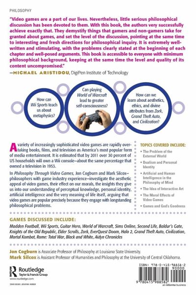 Investigates the aesthetic appeal of video games, their effect on our morals, the insights they give us into our understanding of perceptual knowledge, personal identity, artificial intelligence, and the very meaning of life itself, arguing that video games are popular precisely because they engage with longstanding philosophical problems.