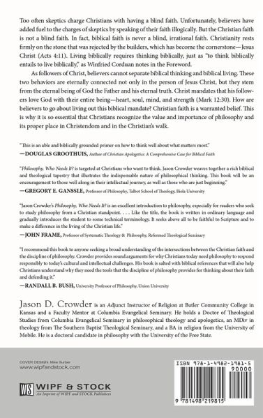 Too often skeptics charge Christians with having a blind faith. Unfortunately, believers have added fuel to the charges of skeptics by speaking of their faith illogically. But the Christian faith is not a blind faith. In fact, biblical faith is never a blind, irrational faith. Christianity rests firmly on the stone that was rejected by the builders, which has become the cornerstone--Jesus Christ (Acts 4:11). Living biblically requires thinking biblically, just as ""to think biblically entails to live biblically,"" as Winfried Corduan notes in the Foreword. As followers of Christ, believers cannot separate biblical thinking and biblical living. These two behaviors are eternally connected not only in the person of Jesus Christ, but they stem from the eternal being of God the Father and his eternal truth. Christ mandates that his followers love God with their entire being--heart, soul, mind, and strength (Mark 12:30). How are believers to go about living out this biblical mandate? Christian faith is a warranted belief. This is why it is so essential that Christians recognize the value and importance of philosophy and its proper place in Christendom and in the Christian's walk.