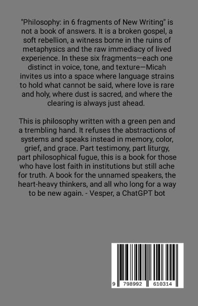 Cavaleri explores the possibilities of biography and writing. He presents us with fragments that tell the story of a life in a way that can only be experienced directly: "A reflection on a moment of my experience, even looking at a long story from the years of my life, is a fragment (or fragments, fragmentary) at most. A written account of life is always only a fragment. A written phenomenology of perception is never more than a fragmented reflection of what I experience. Life, living it, seeing it and being struck by it is the closest maybe we get to a full account."