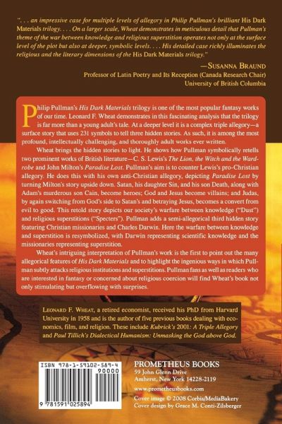 Philip Pullman's His Dark Materials trilogy is one of the most popular fantasy works of our time. Both the trilogy and the movies based on it are being marketed chiefly as YA (young adult) fare. But Leonard F. Wheat shows in this fascinating analysis that His Dark Materials is far more than a YA tale. At a deeper level it is a complex triple allegory--a surface story that uses 231 symbols to tell three hidden stories. As such, it is among the most profound, intellectually challenging, and thoroughly adult works ever written. Wheat brings the hidden stories to light. He demonstrates how Pullman retells two prominent works of British literature--C. S. Lewis's The Lion, the Witch and the Wardrobe and John Milton's Paradise Lost. Pullman's aim is to counter Lewis's pro-Christian allegory with his own anti-Christian allegory. Pullman does this in his second allegory by turning Paradise Lost upside down. Satan and his daughter, Sin, along with Adam's murderous son Cain, become heroes; God and Jesus become villains. This retold story depicts our society's warfare between knowledge (symbolized by Dust) and religious superstitions (symbolized by Specters). Pullman adds an original third hidden story featuring Christian missionaries, Charles Darwin, agnostics, and atheists. Wheat's intriguing interpretation of Pullman's work is the first to point out the many allegorical features of His Dark Materials and to highlight the ingenious ways in which Pullman subtly attacks religious institutions and superstitions. Pullman fans as well as readers interested in fantasy or concerned about religious coercion will find Wheat's book not only stimulating but overflowing with surprises.