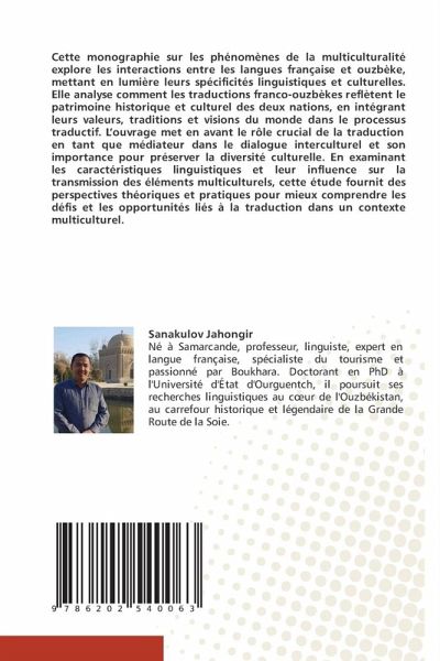 Cette monographie sur les phénomènes de la multiculturalité explore les interactions entre les langues française et ouzbèke, mettant en lumière leurs spécificités linguistiques et culturelles. Elle analyse comment les traductions franco-ouzbèkes reflètent le patrimoine historique et culturel des deux nations, en intégrant leurs valeurs, traditions et visions du monde dans le processus traductif. L'ouvrage met en avant le rôle crucial de la traduction en tant que médiateur dans le dialogue interculturel et son importance pour préserver la diversité culturelle. En examinant les caractéristiques linguistiques et leur influence sur la transmission des éléments multiculturels, cette étude fournit des perspectives théoriques et pratiques pour mieux comprendre les défis et les opportunités liés à la traduction dans un contexte multiculturel.