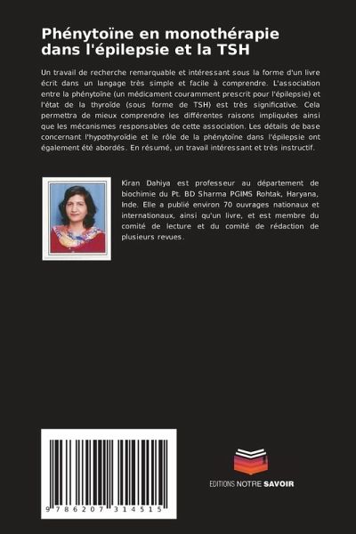 Un travail de recherche remarquable et intéressant sous la forme d'un livre écrit dans un langage très simple et facile à comprendre. L'association entre la phénytoïne (un médicament couramment prescrit pour l'épilepsie) et l'état de la thyroïde (sous forme de TSH) est très significative. Cela permettra de mieux comprendre les différentes raisons impliquées ainsi que les mécanismes responsables de cette association. Les détails de base concernant l'hypothyroïdie et le rôle de la phénytoïne dans l'épilepsie ont également été abordés. En résumé, un travail intéressant et très instructif.