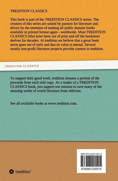 This book is part of the TREDITION CLASSICS series. The creators of this series are united by passion for literature and driven by the intention of making all public domain books available in printed format again - worldwide. At tredition we believe that a great book never goes out of style. Several mostly non-profit literature projects provide content to tredition. To support their good work, tredition donates a portion of the proceeds from each sold copy. As a reader of a TREDITION CLASSICS book, you support our mission to save many of the amazing works of world literature from oblivion.