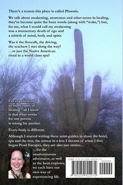 There's a reason this place is called Phoenix. We talk about awakening, awareness and other terms in healing, they've become quite the buzz words (along with "woke,") but, for me, what I would call my awakening was a momentary death of ego and a rebirth of mind, body and spirit. Was it the firewalk, the driving, the teachers I met along the way? ...or just the Native American ritual in a world class spa? I've experienced so many types of healing - all I know is that what works for one person is wrong for another. Every body is different. Although I started writing these mini-guides to share the hotel, spa and the rest, the retreat in a box I dreamt of when I first began Pearl Escapes, they are also just stories... ...for the unadventurous adventurer, as well as the keen explorer, we each have our own way of experiencing life. From the Amazon Best Selling author of the "Camino de la Luna" series and the Pearl Escapes guides.