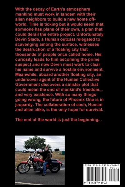 The end of the world is just the beginning! The decay of Earth's atmosphere forces mankind to move off-world, with the help of their alien neighbors. A massive undertaking to build a replacement as time runs out, but someone has other ideas. Someone doesn't want the project to succeed and already tense interspecies relations are pushed to their limit. Devin Slade, an outcast relegated to life on the surface, witnesses the destruction of a floating city housing thousands of people, alien and human alike. Initially a suspect, he must prove his innocence while fighting to survive the hostile world around him. Meanwhile, an undercover agent working for The Human Collective Government catches wind of a sinister plot that could mean the end of mankind. Is it possible to make a new home, with new neighbors, when forces conspire against humanities last hope?