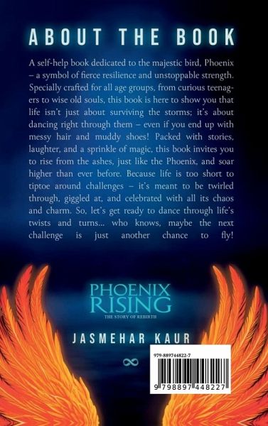 ABOUT THE BOOK A self-help book dedicated to the majestic bird, Phoenix - a symbol of fierce resilience and unstoppable strength. Specially crafted for all age groups, from curious teenagers to wise old souls, this book is here to show you that life isn't just about surviving the storms; it's about dancing right through them - even if you end up with messy hair and muddy shoes! Packed with stories, laughter, and a sprinkle of magic, this book invites you to rise from the ashes, just like the Phoenix, and soar higher than ever before. Because life is too short to tiptoe around challenges - it's meant to be twirled through, giggled at, and celebrated with all its chaos and charm. So, let's get ready to dance through life's twists and turns... who knows, maybe the next challenge is just another chance to fly!