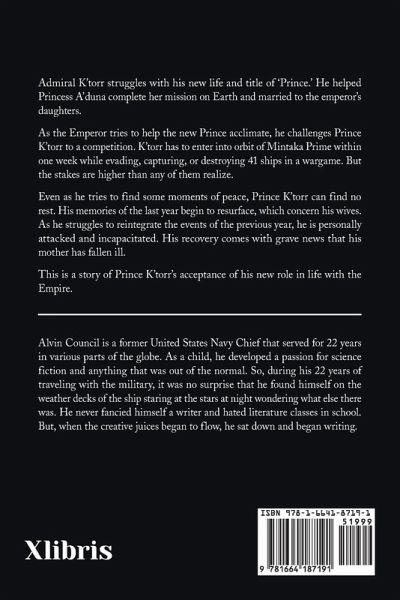 Admiral K'torr struggles with his new life and title of 'Prince.' He helped Princess A'duna complete her mission on Earth and married to the emperor's daughters. As the Emperor tries to help the new Prince acclimate, he challenges Prince K'torr to a competition. K'torr has to enter into orbit of Mintaka Prime within one week while evading, capturing, or destroying 41 ships in a wargame. But the stakes are higher than any of them realize. Even as he tries to find some moments of peace, Prince K'torr can find no rest. His memories of the last year begin to resurface, which concern his wives. As he struggles to reintegrate the events of the previous year, he is personally attacked and incapacitated. His recovery comes with grave news that his mother has fallen ill. This is a story of Prince K'torr's acceptance of his new role in life with the Empire.
