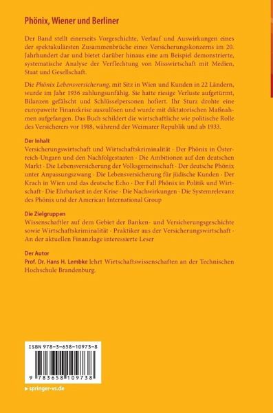 Die Phönix Lebensversicherung, mit Sitz inWien und Kunden in 22 Ländern, wurde im Jahr 1936 zahlungsunfähig. Sie hatteriesige Verluste aufgetürmt, Bilanzen gefälscht und Schlüsselpersonen hofiert.Ihr Sturz drohte eine europaweite Finanzkrise auszulösen und wurde mitdiktatorischen Maßnahmen aufgefangen. Das Buch schildert die wirtschaftlichewie politische Rolle des Versicherers vor 1918, während der Weimarer Republikund ab 1933.