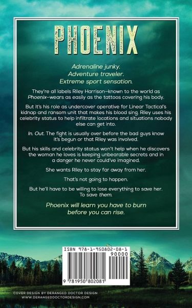 Adrenaline junky. Adventure traveler. Extreme sport sensation. They’re all labels Riley Harrison—known to the world as Phoenix—wears as easily as the tattoos covering his body. But it’s his role as undercover operative for Linear Tactical’s kidnap and ransom unit that makes his blood sing. Riley uses his celebrity status to help infiltrate locations and situations nobody else can get into. In. Out. The fight is usually over before the bad guys know it’s begun or that Riley was involved. But his skills and celebrity status won’t help when he discovers the woman he loves is keeping unbearable secrets and in a danger he never could’ve imagined. She wants Riley to stay far away from her. That’s not going to happen. But he’ll have to be willing to lose everything to save her. To save them. Phoenix will learn you have to burn before you can rise.