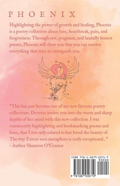 Highlighting the power of growth and healing, Phoenix is a poetry collection about love, heartbreak, pain, and forgiveness. Through raw, poignant, brutally honest poems, Phoenix will show that you can survive everything that tries to extinguish you.